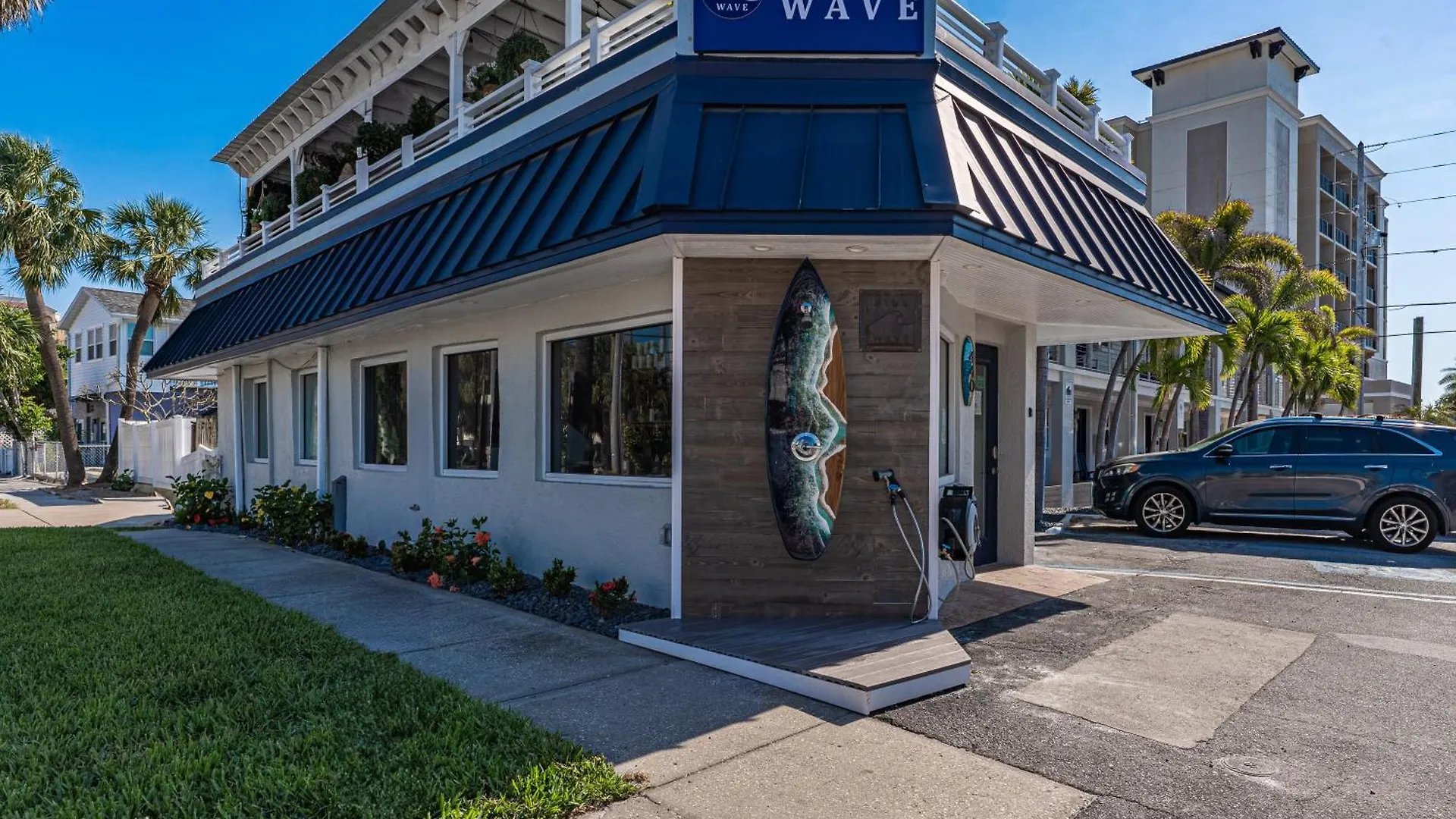 L'hotel Blue Wave Suites Clearwater Beach è situato a circa 20 minuti a piedi dalla Mandalay Avenue e a una distanza di 5 km da Florida Auto Exchange Stadium. Questo motel offre la possibilità di tour delle cantine, abbastanza vicino a Little Toot.